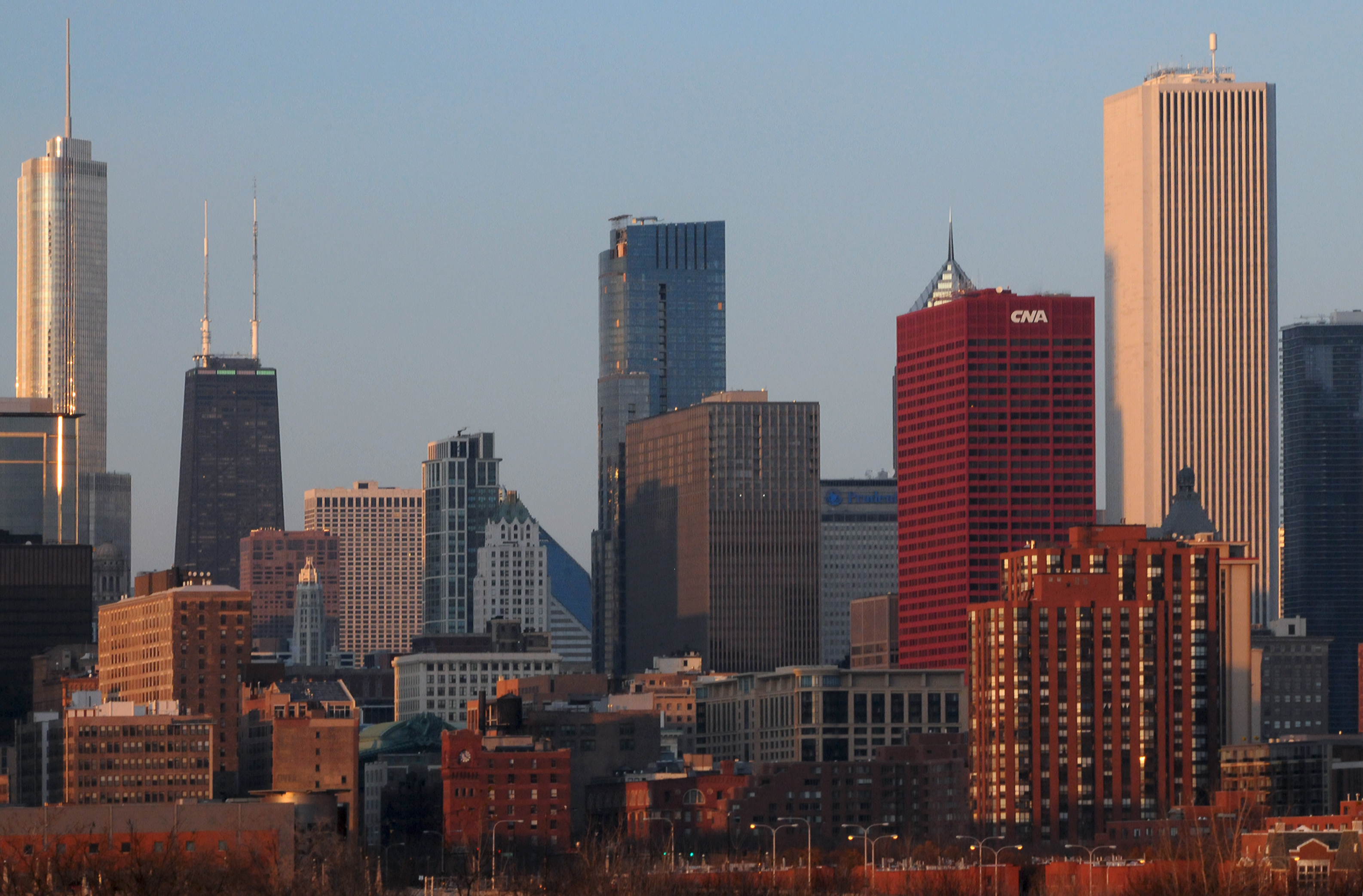 The Legacy at Millennium Park: Bisecting the skyline in this distant view from 18th Street, to the southwest