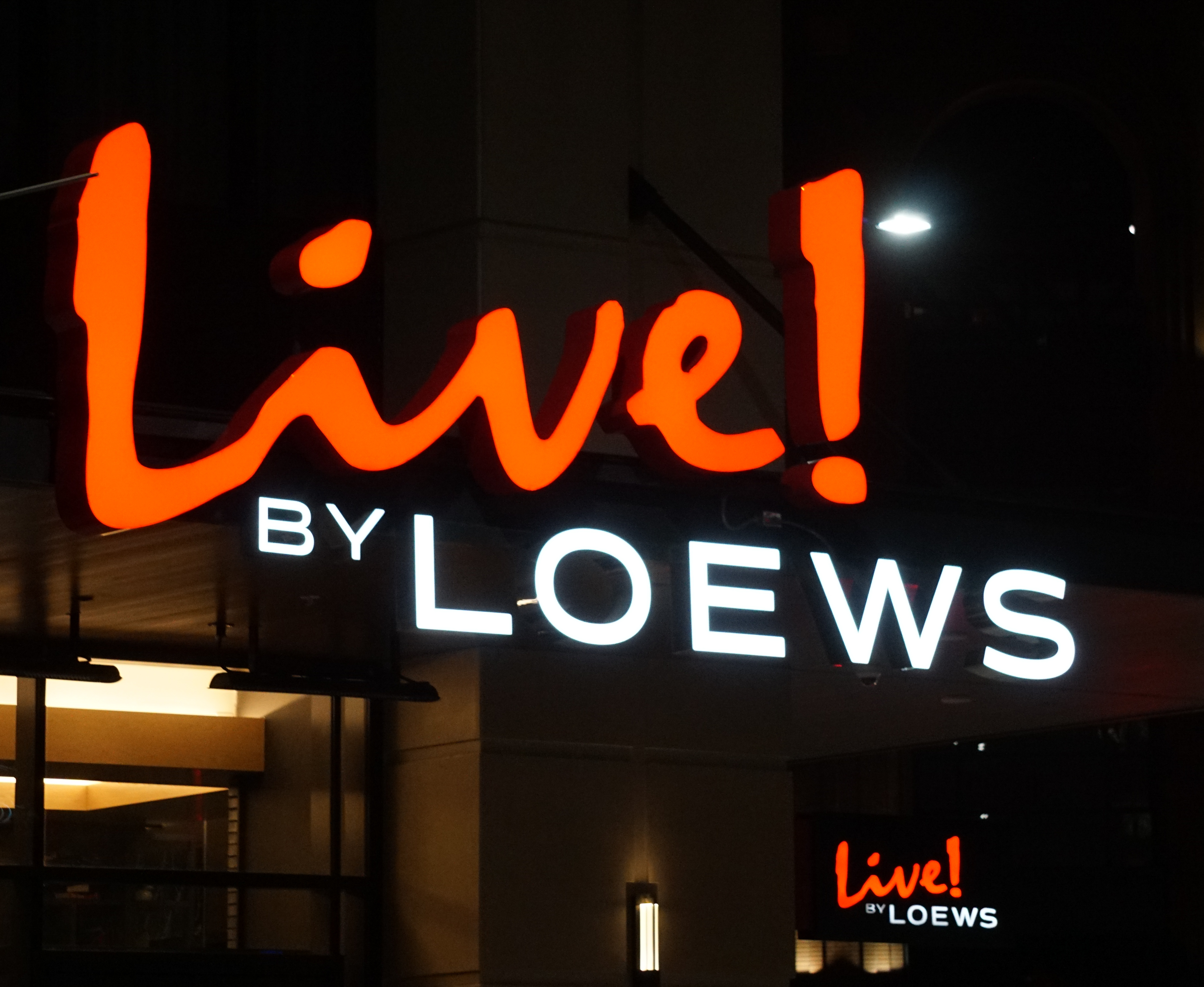 Live! by Loews: Signage above the main entrance; March 26, 2020