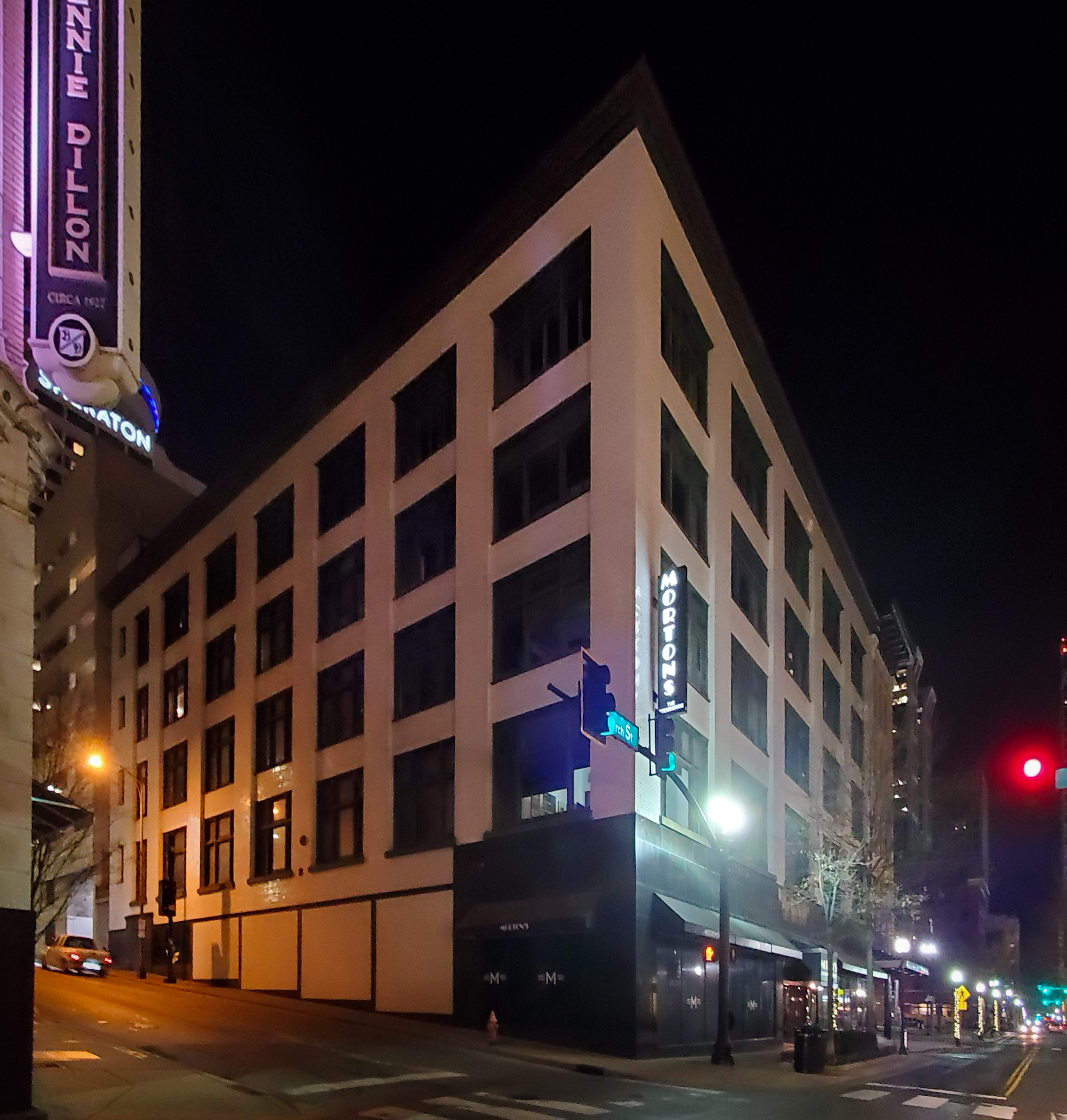 618 Church Street: From the southwest at night; December 26, 2021