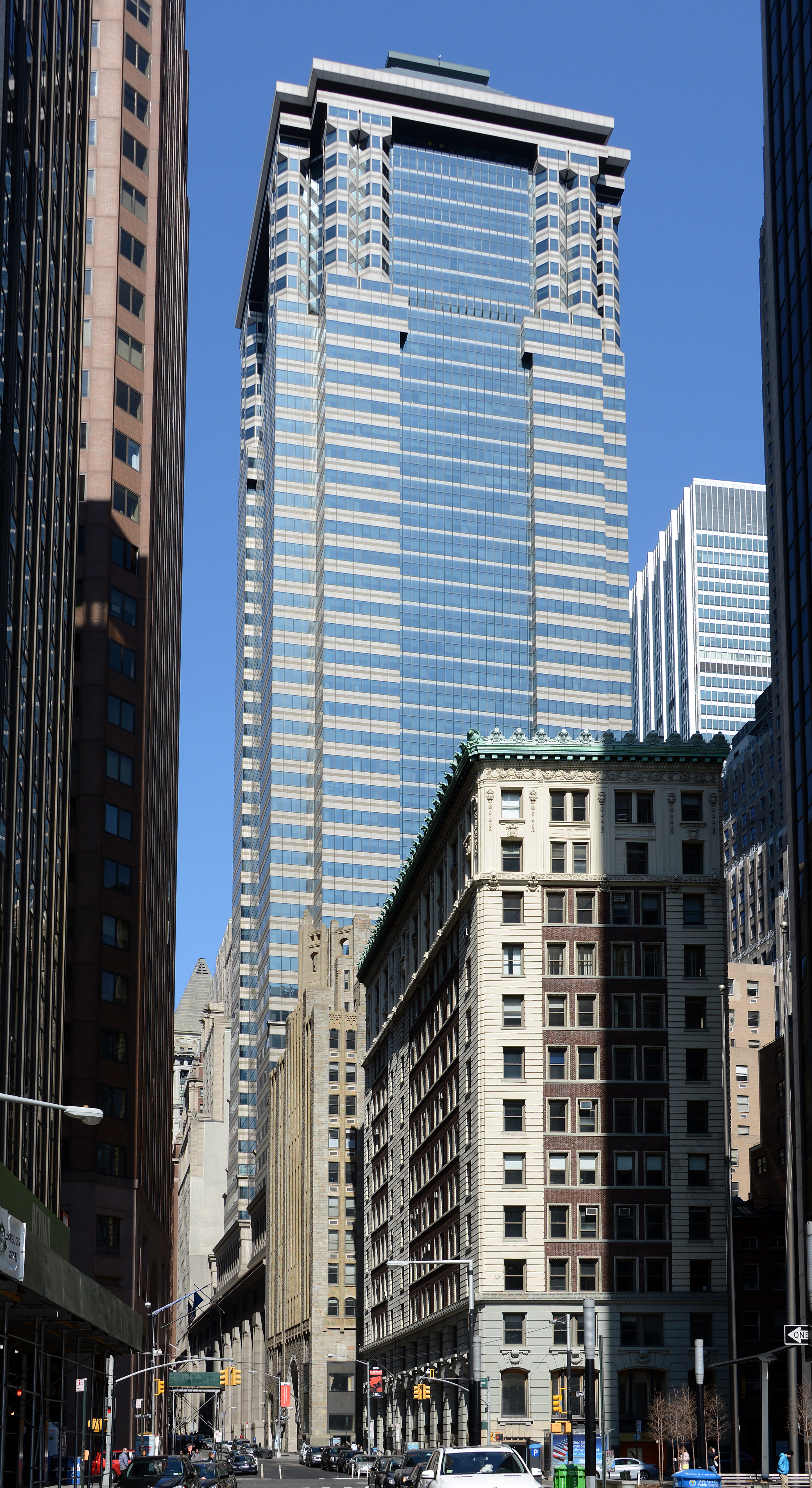 60 Wall Street: View from the southeast at Wall and Front Streets