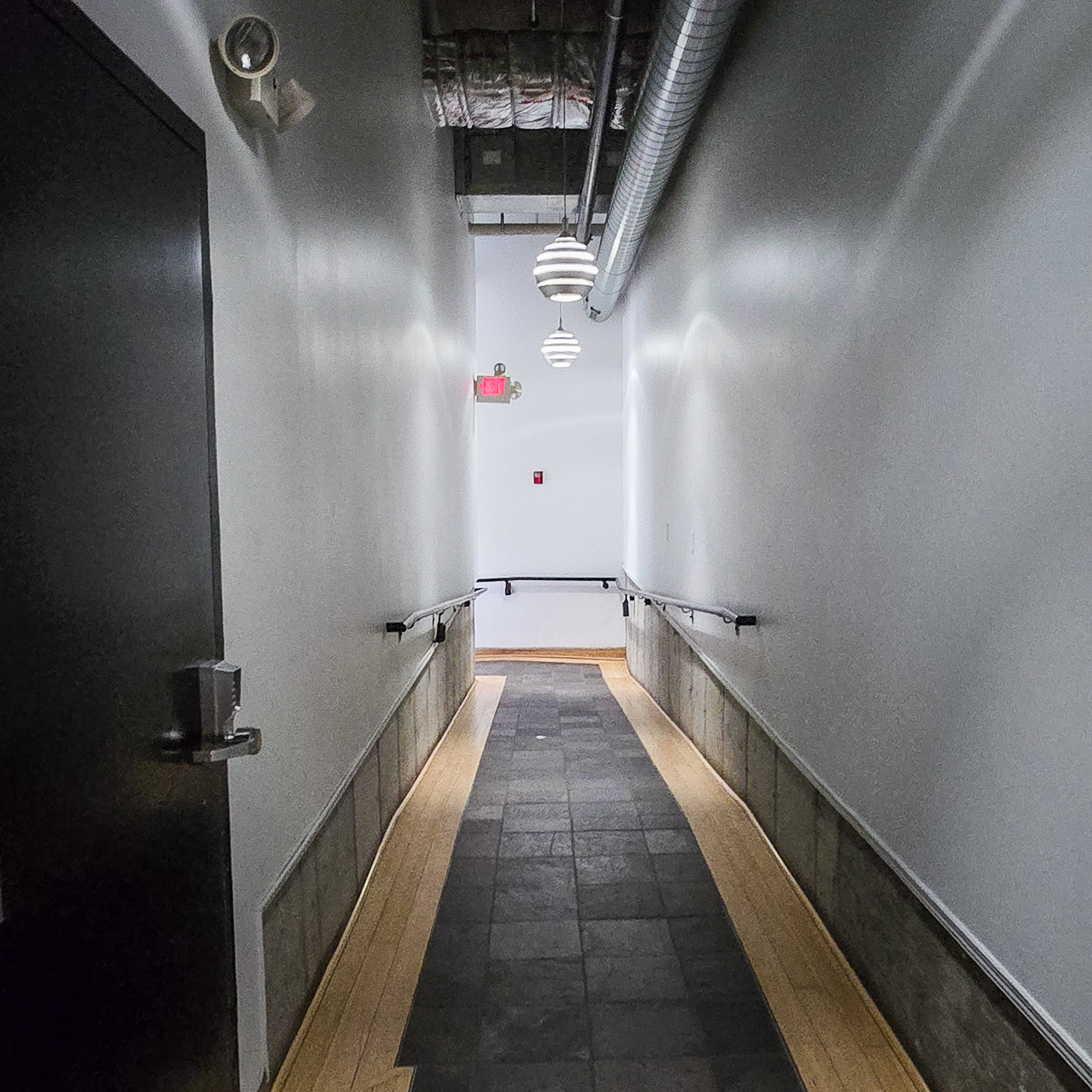 Packard Lofts: Interior hallway heading towards the entrance from the elevator lobby; May 11, 2024