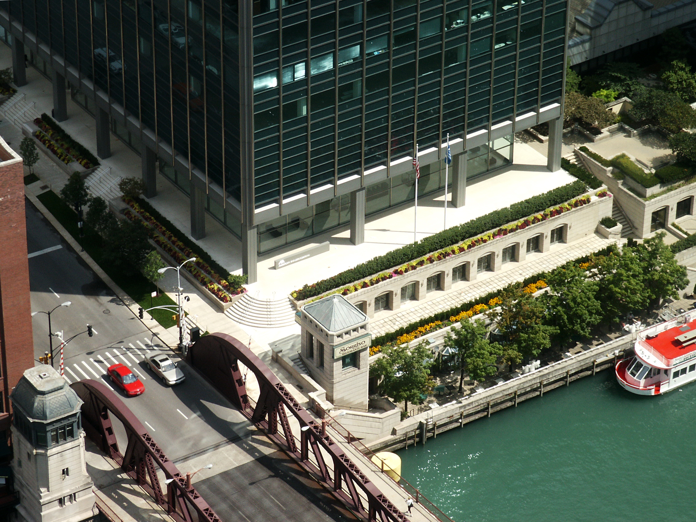 321 North Clark Street: Looking down at the base from the LaSalle-Wacker Building