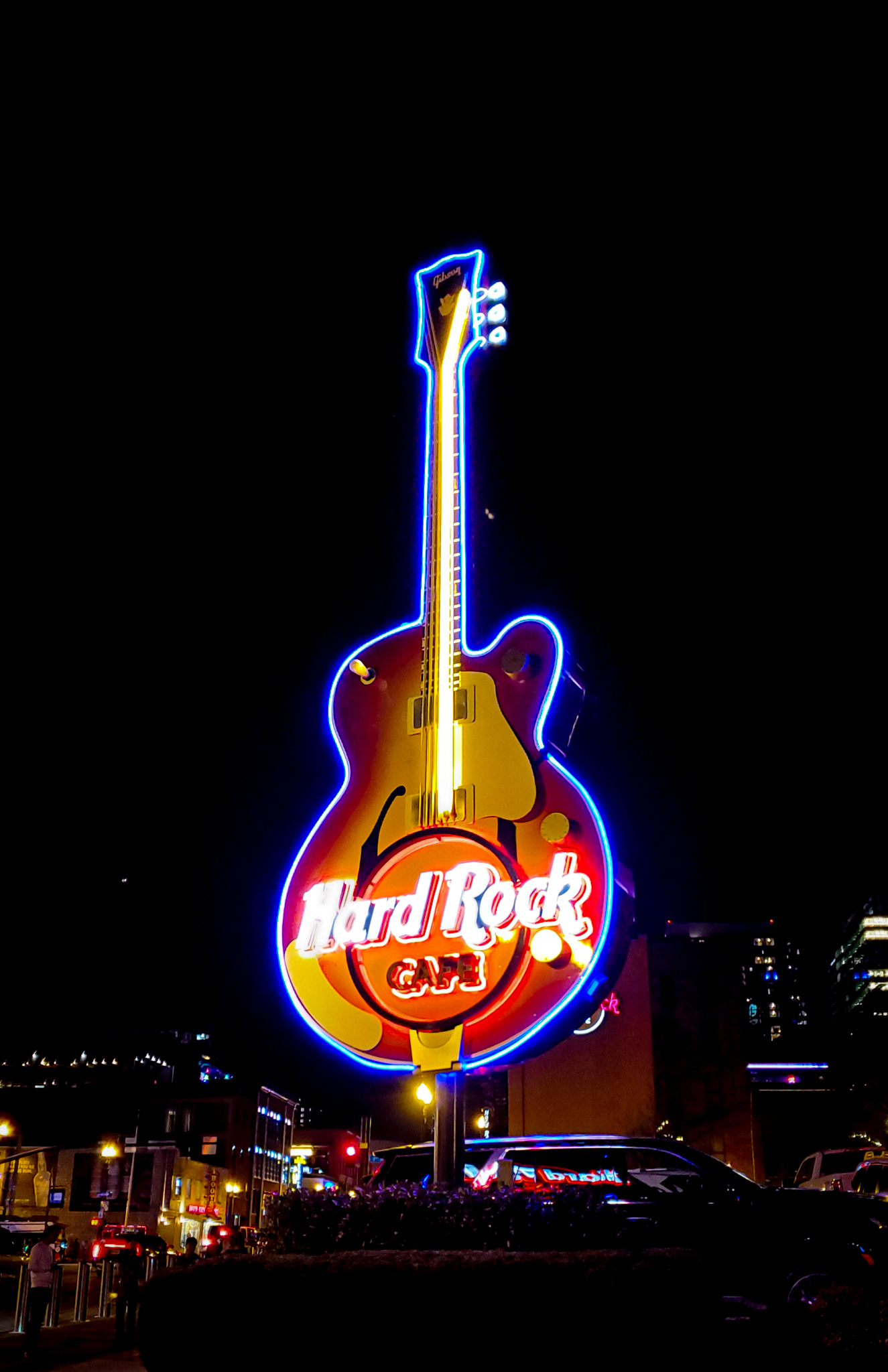 Hard Rock Cafe Nashville Sign: From the northeast at night; December 25, 2021