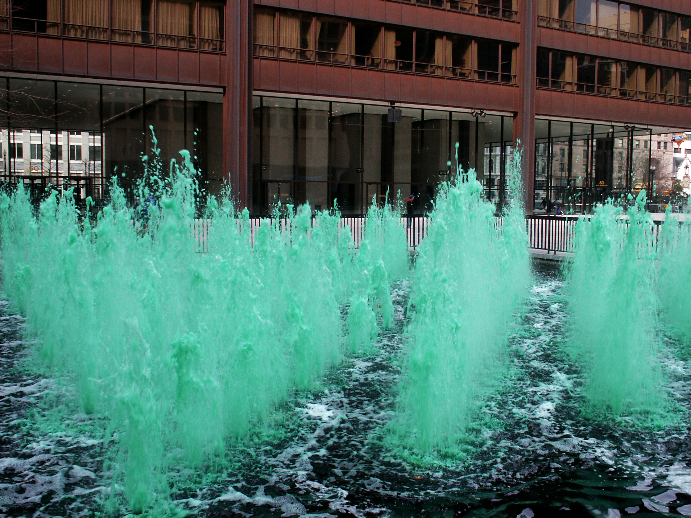 Richard J. Daley Center: Fountain colored green for St. Patrick's Day