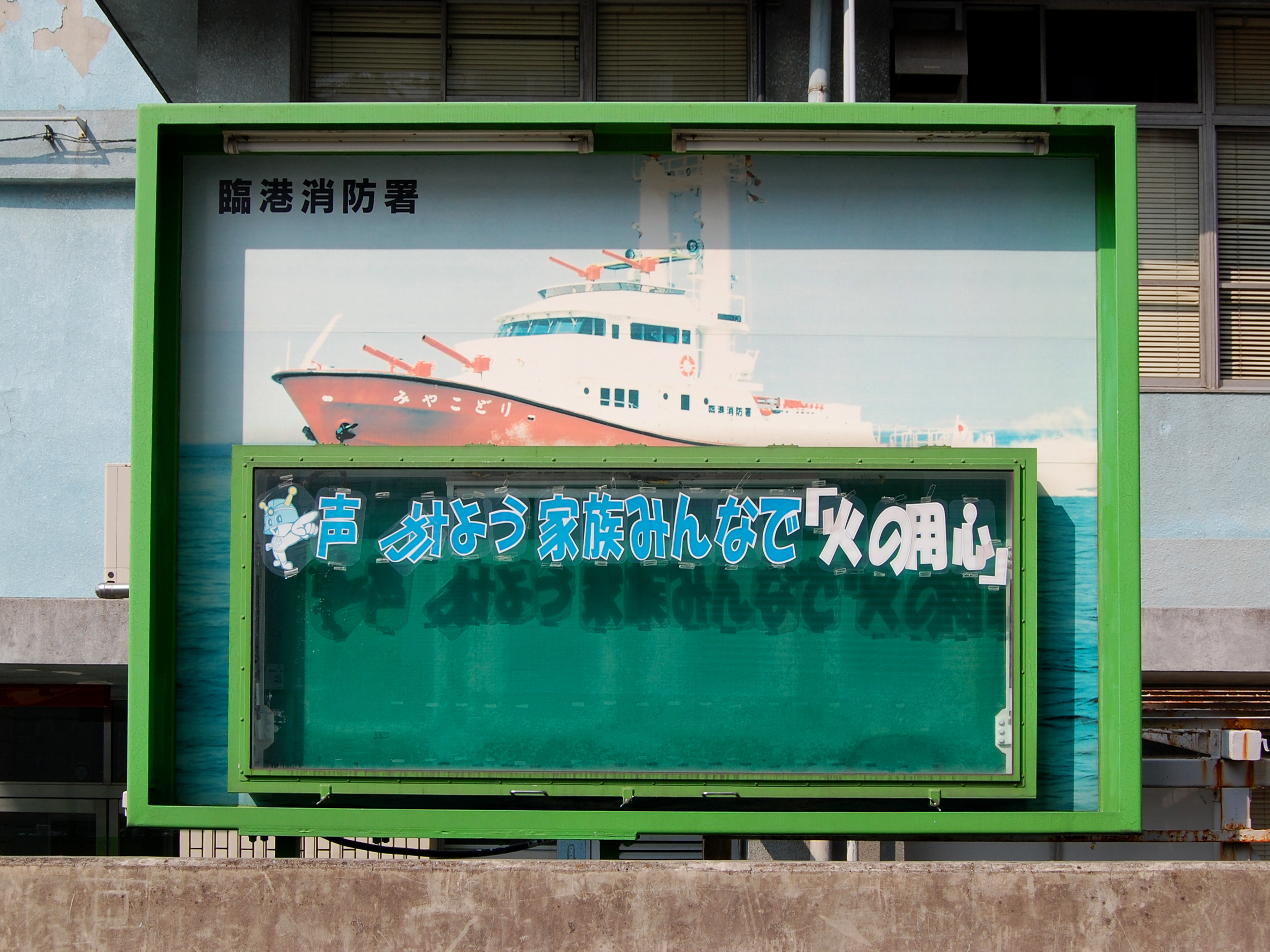 Rinko Shoboshou Port Fire Service Station: Sign near the front entrance
