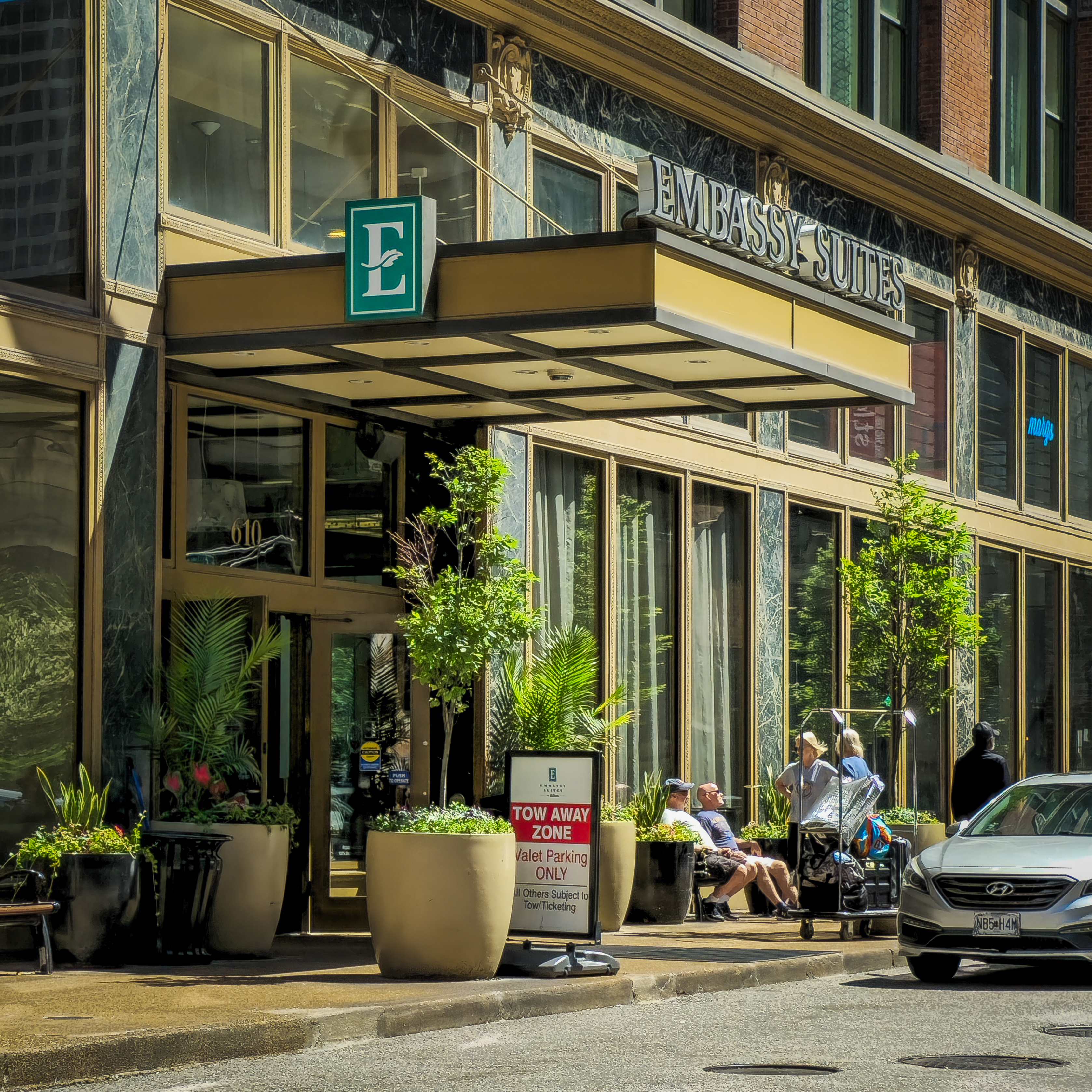 The Laurel: Hotel entrance from the northwest; May 11, 2024