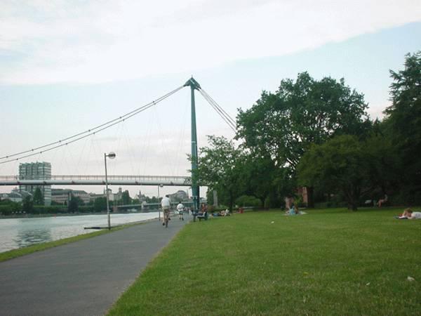 Holbeinsteg: The Main River shore at Holbeinsteg bridge (Sachsenhausen)