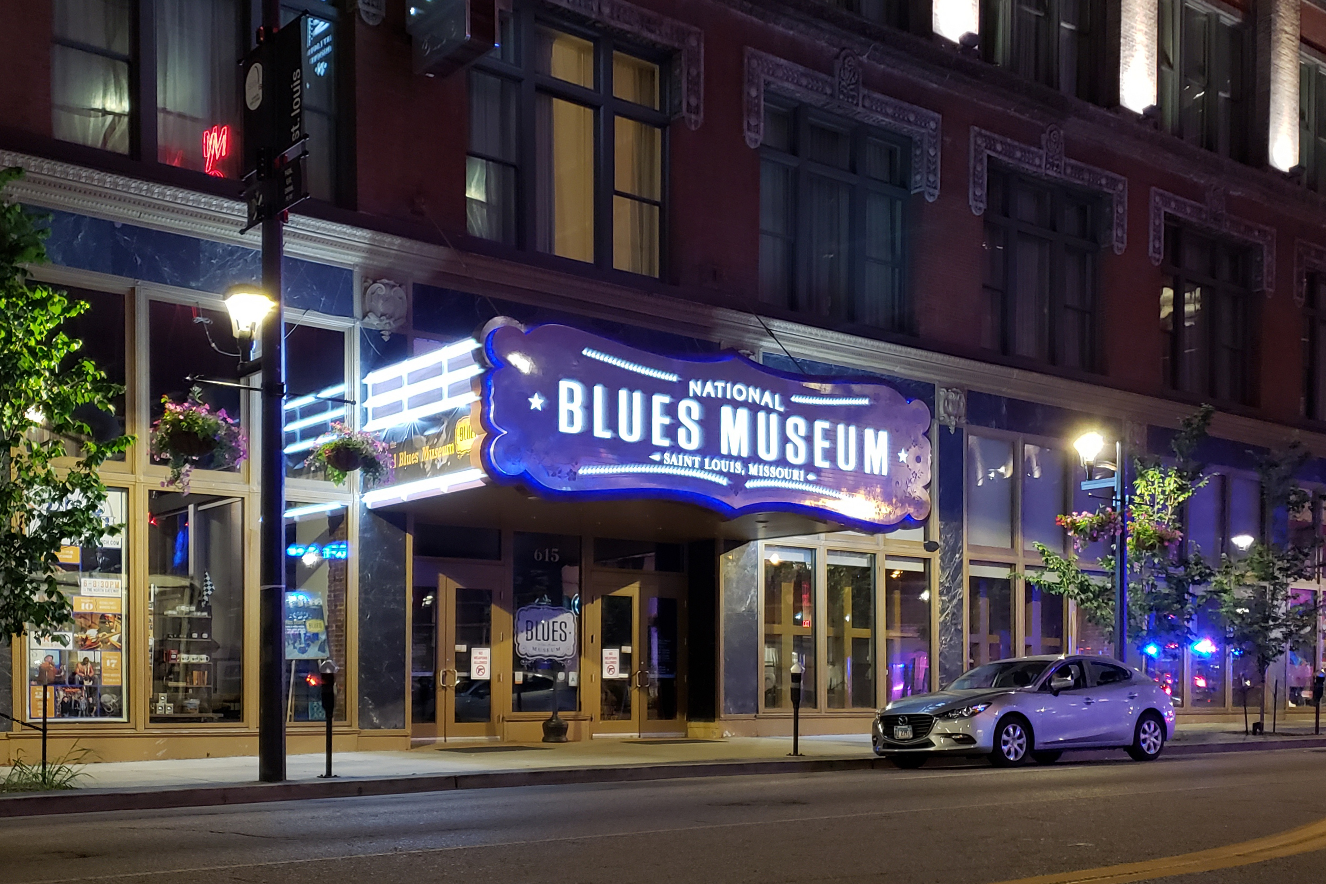 The Laurel: National Blues Museum entrance at night; June 6, 2018