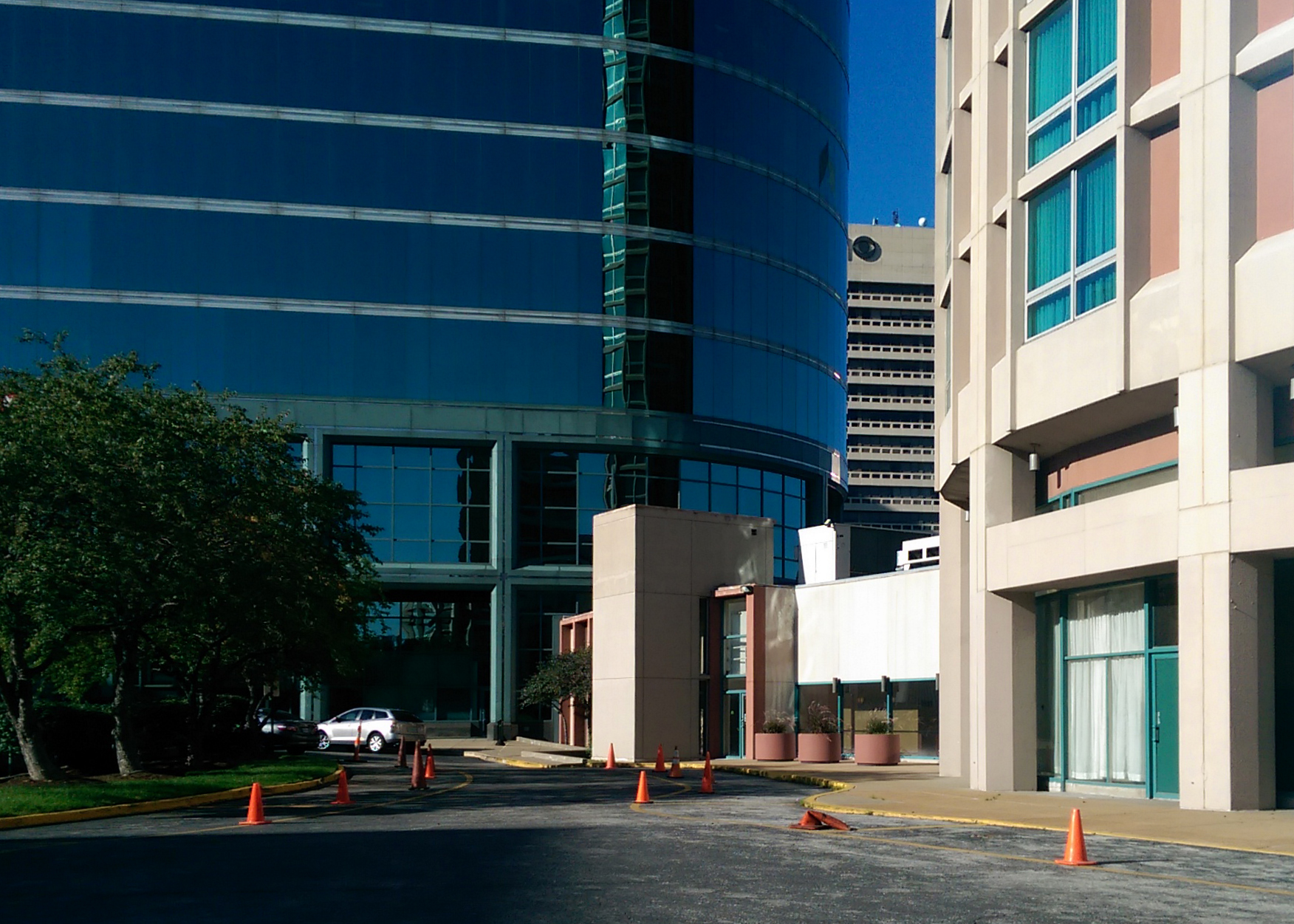 Millennium Hotel Saint Louis Tower I: Base of the Deloitte Building above the north wing of the hotel; August 13, 2014