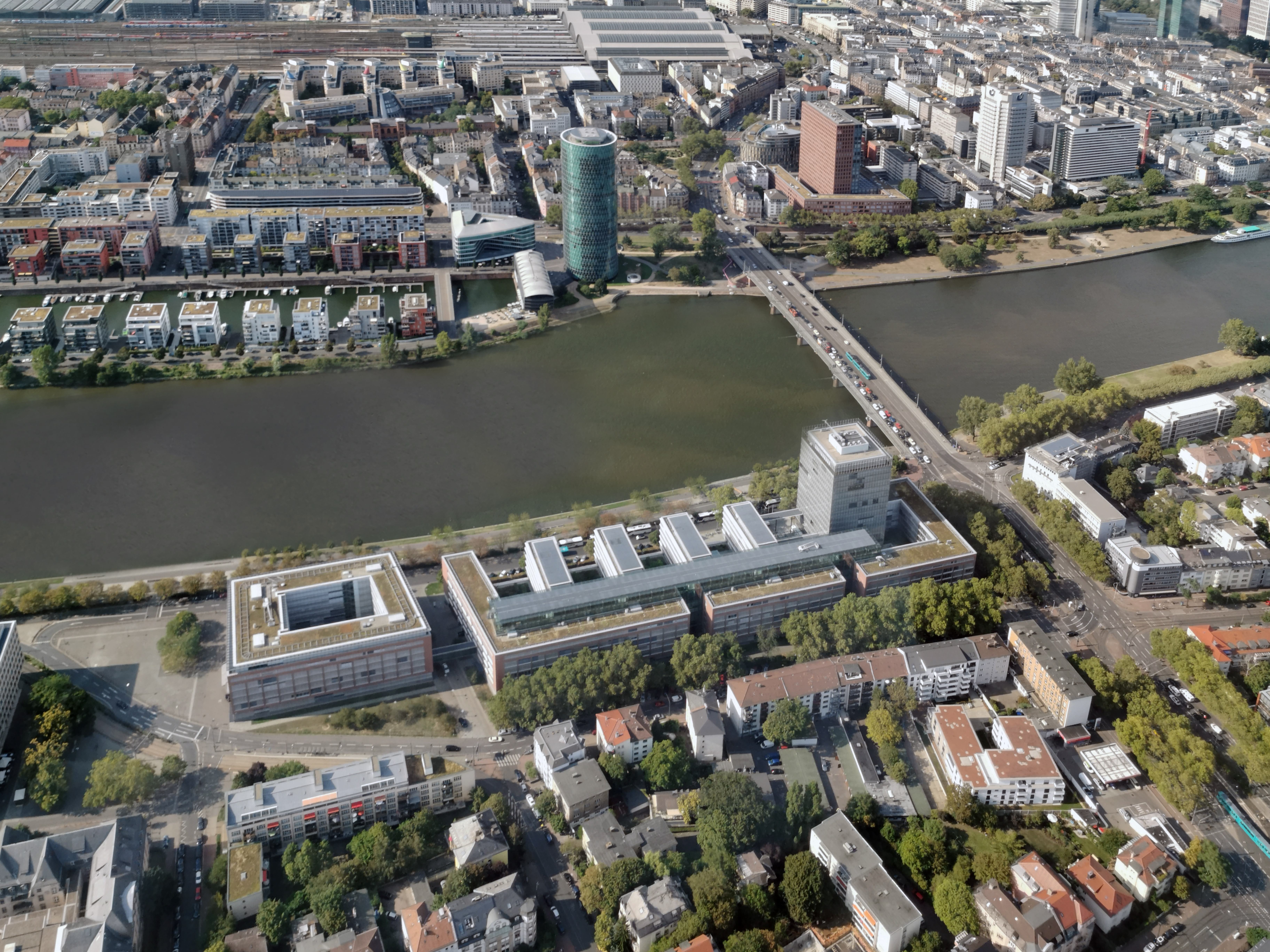 Flight with a helicopter over Frankfurt
