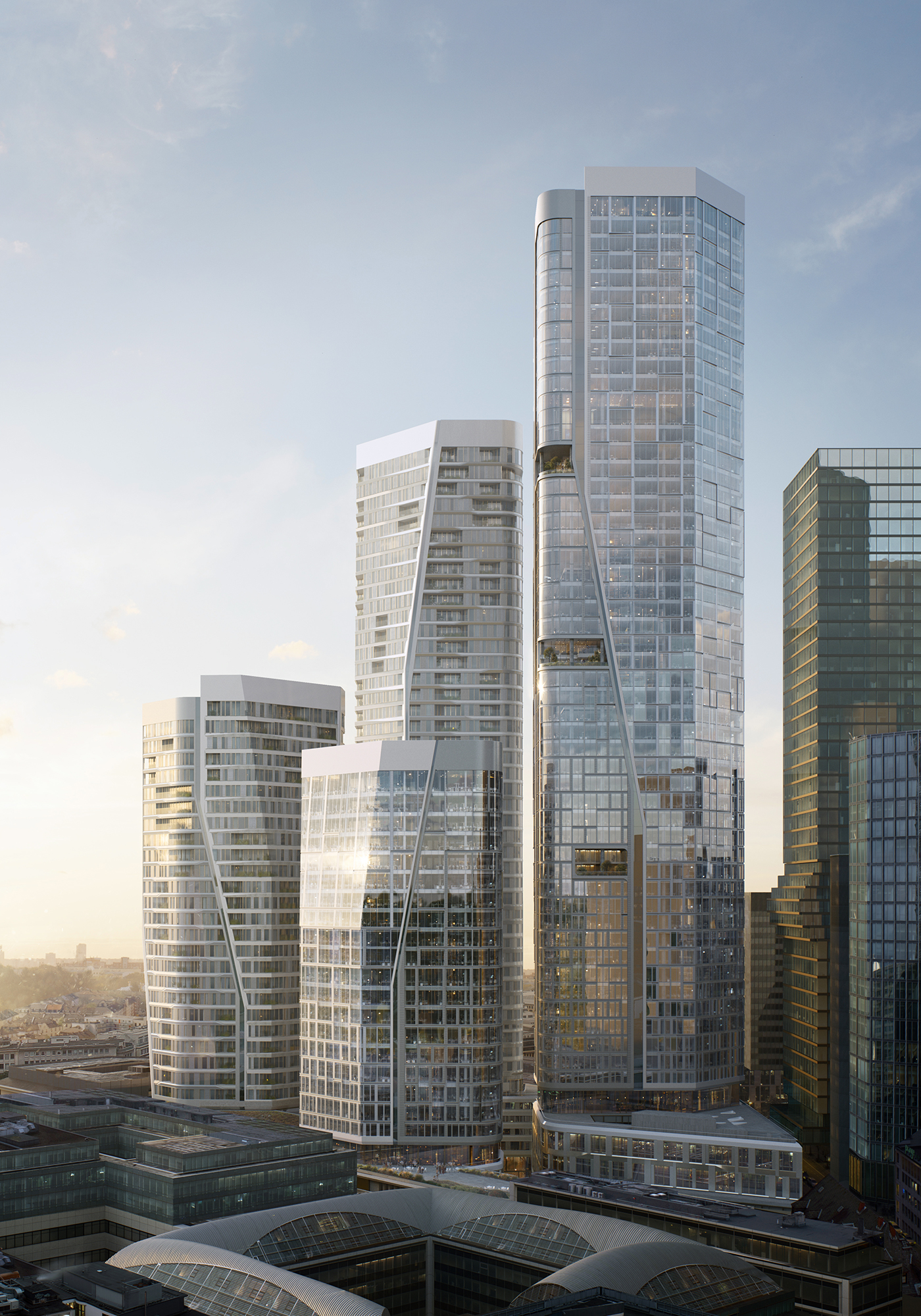 FOUR Frankfurt - Tower 1: The skyscraper project FOUR - rendering as seen from north