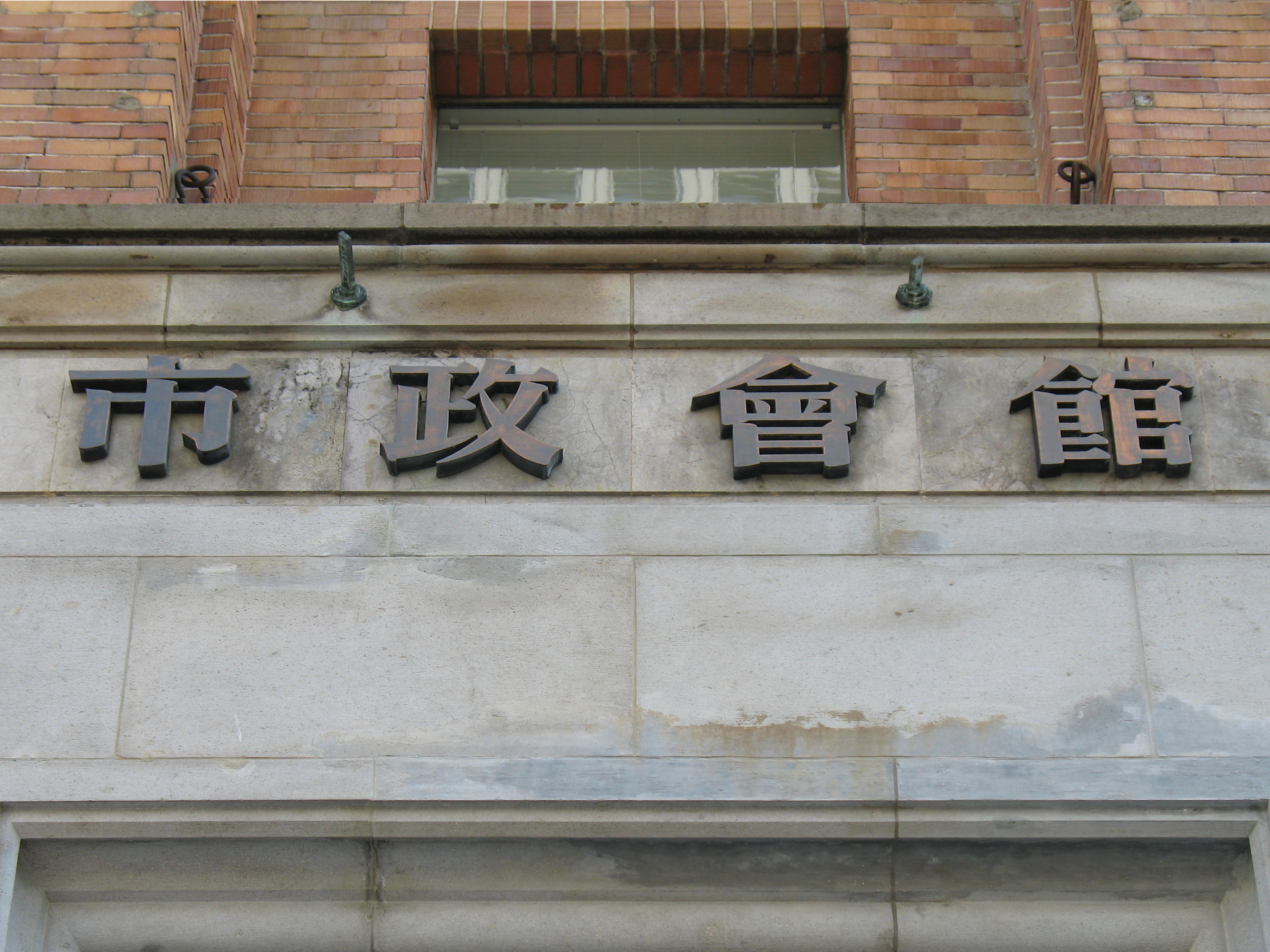 Hibiya Public Hall: Sign above the south entrance