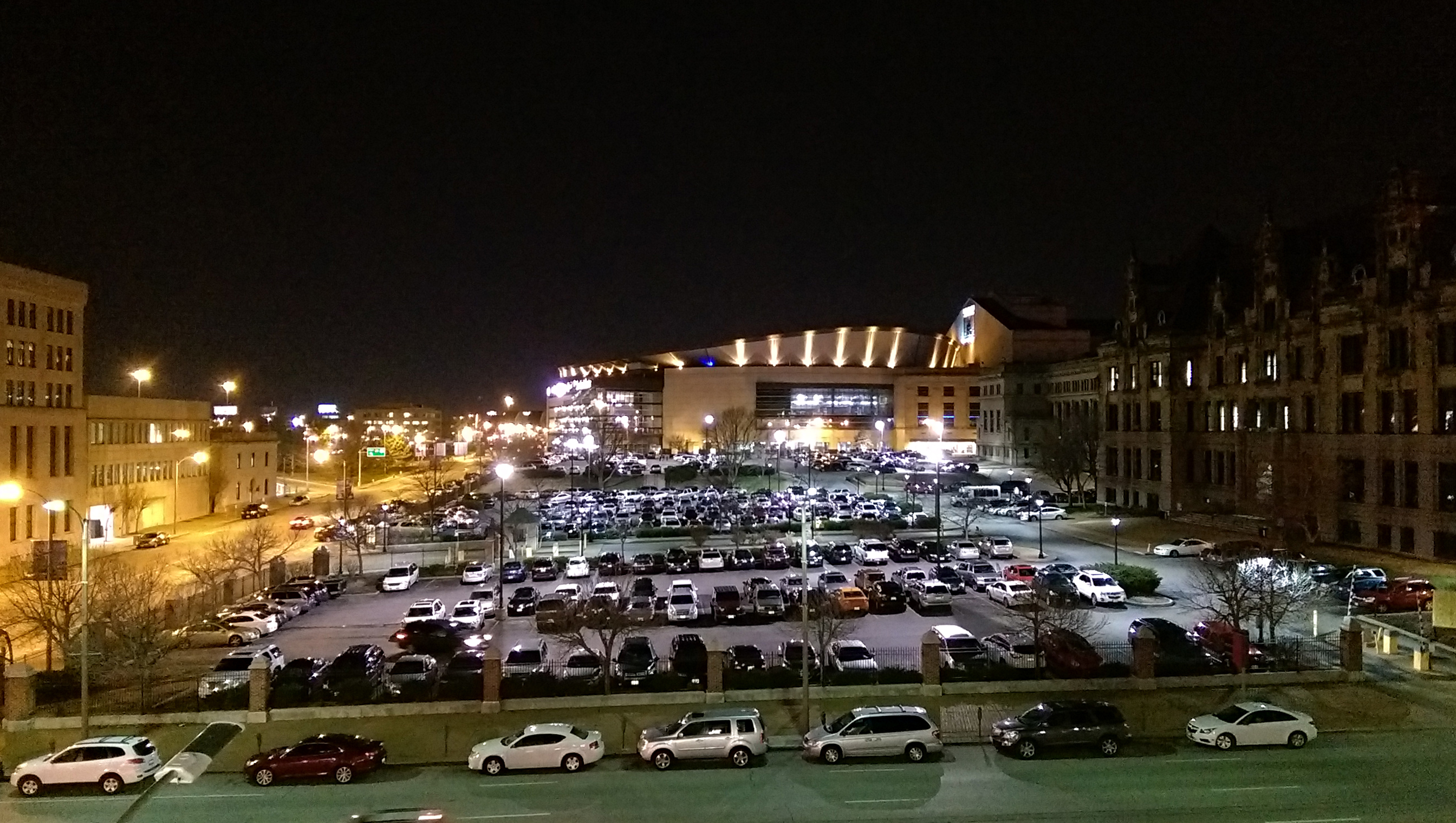 Enterprise Center: Distant view from the east at night; March 26, 2015