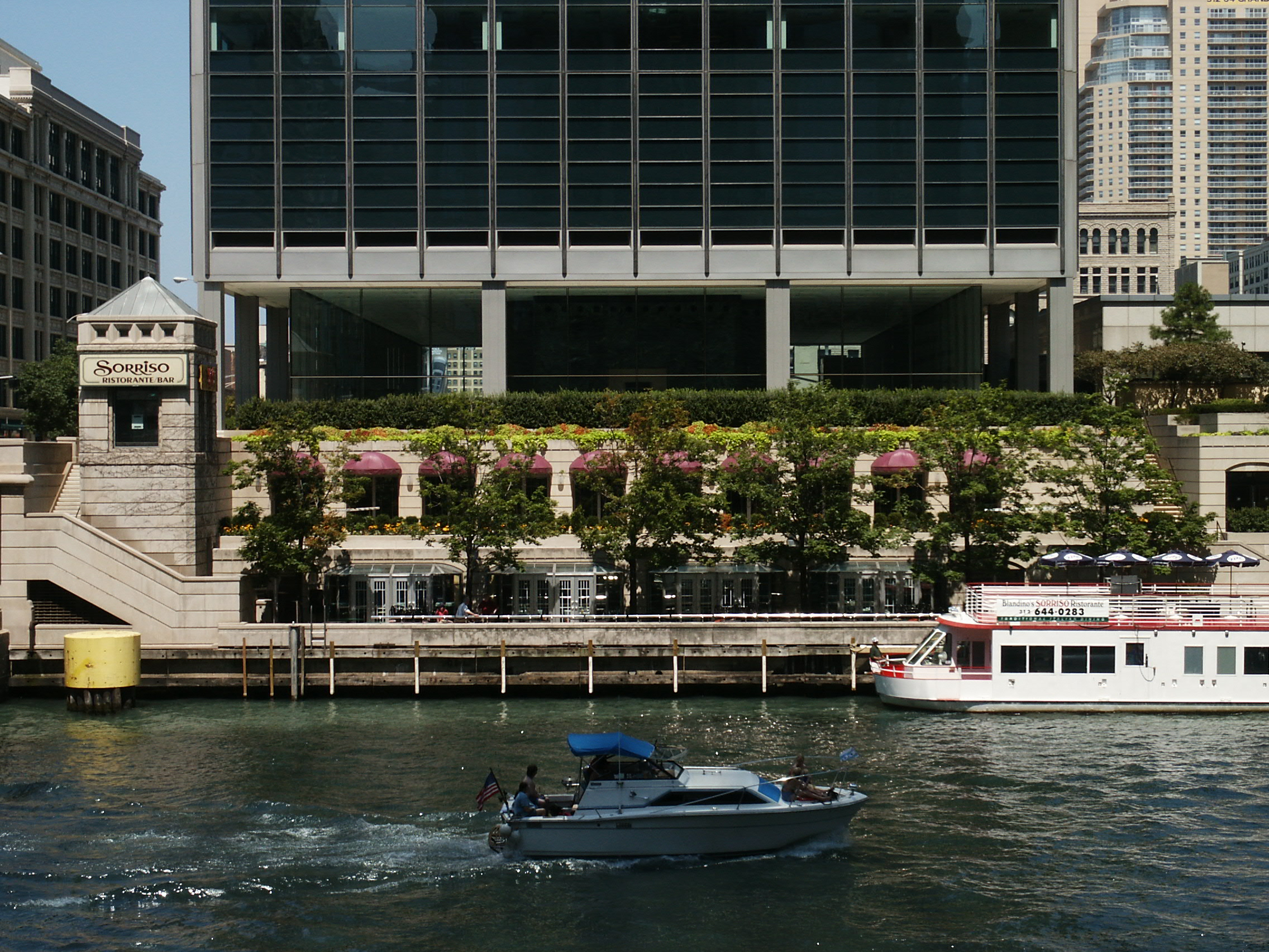 321 North Clark Street: Riverfront terraces at the base
