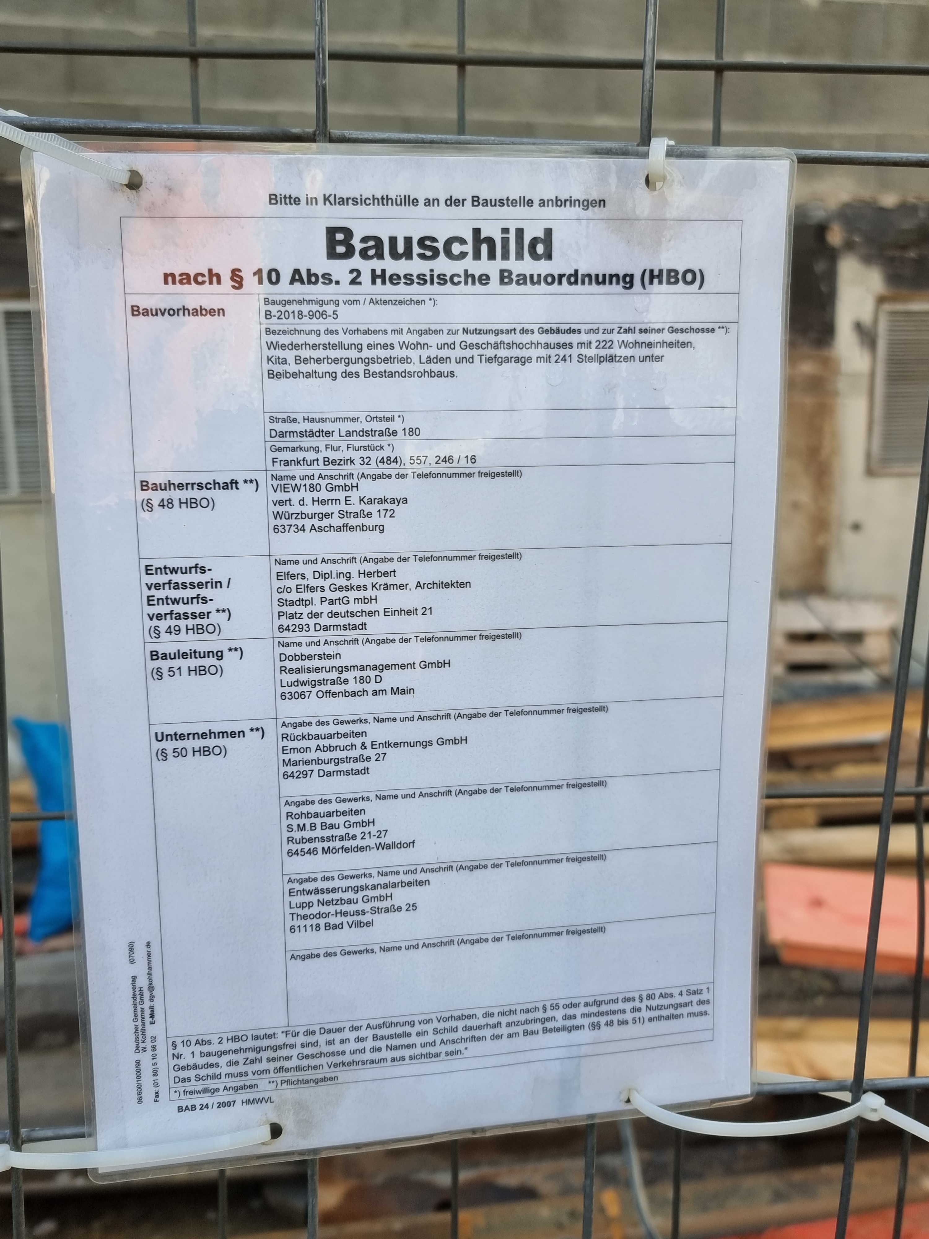 Darmstädter Landstraße 180-186: Construction sign
