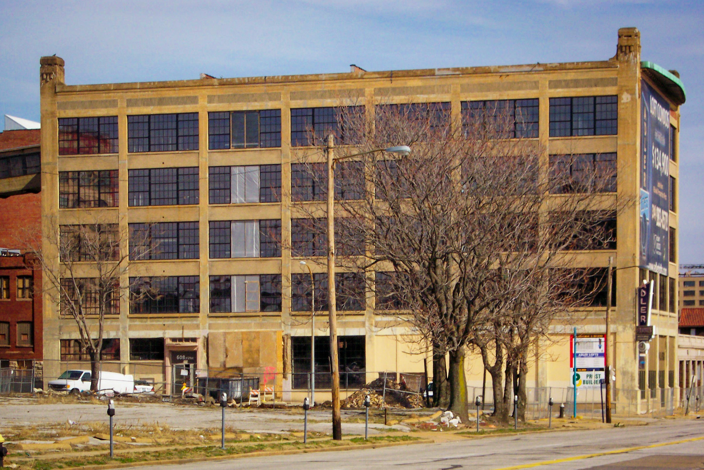Adler Frame Lofts: View from the southwest during renovation; March 10, 2006