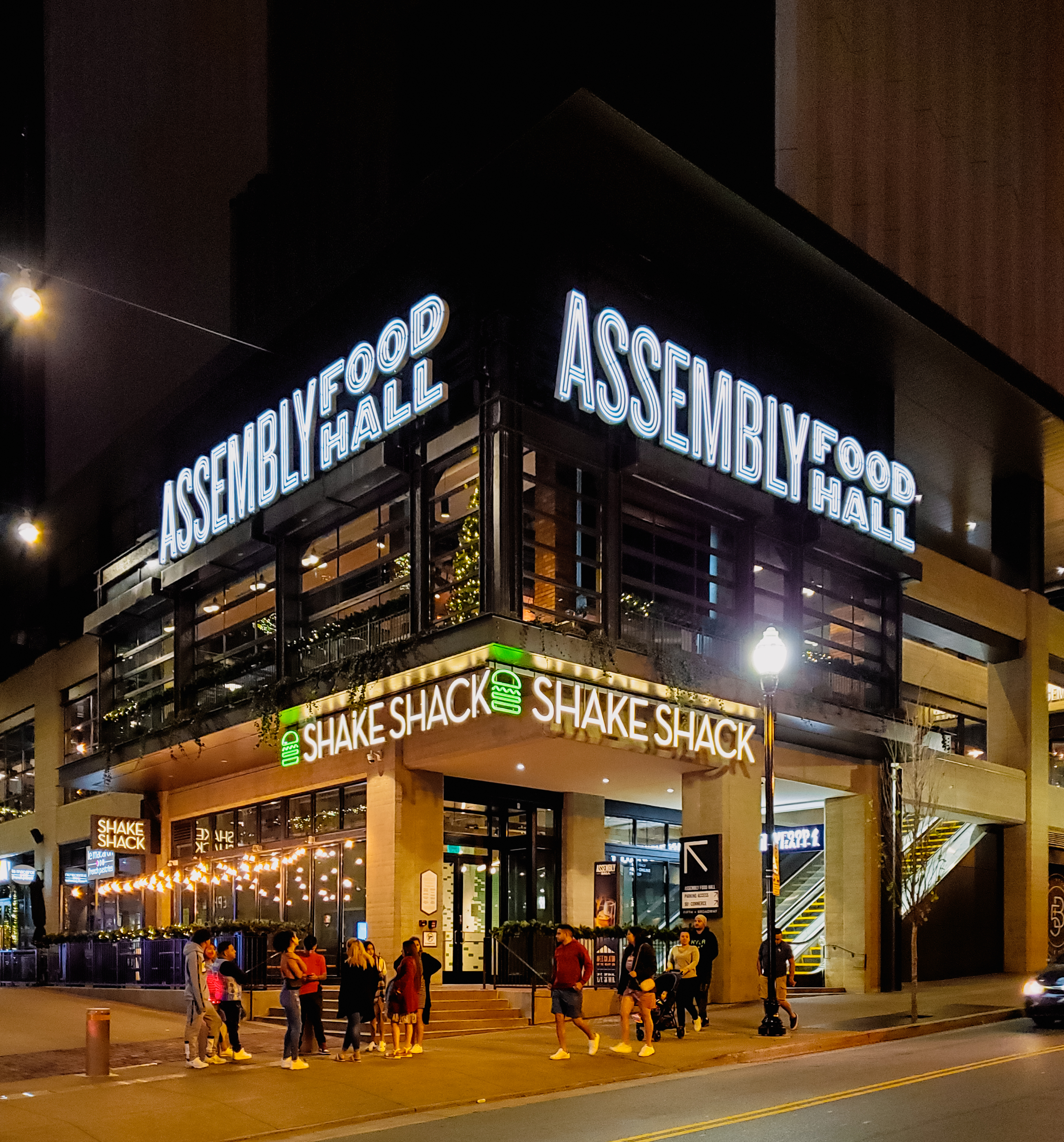 501 Commerce Street: Southeast corner at night; December 25, 2021