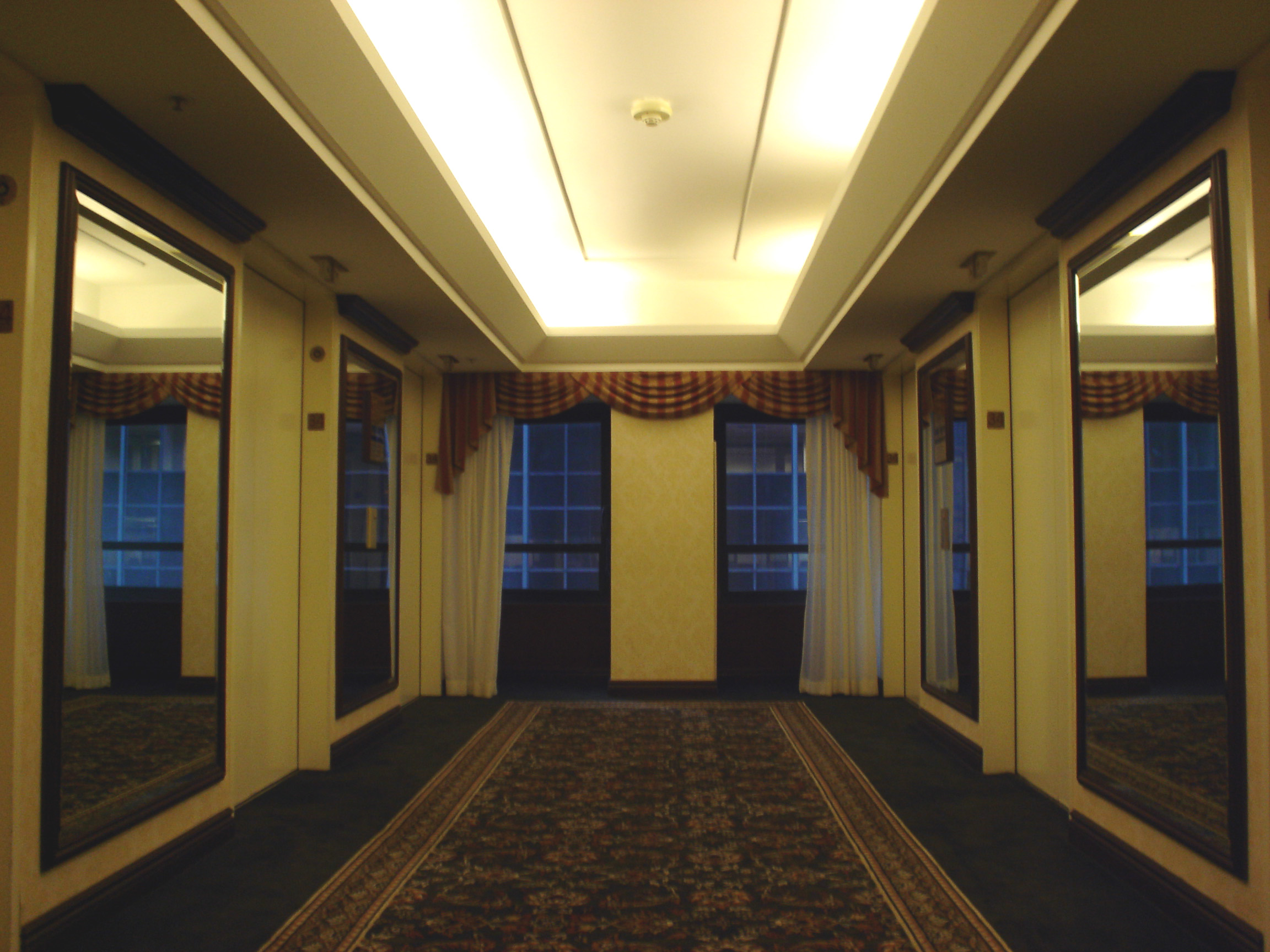 New York Hilton Hotel: In front of the elevators; typical floor