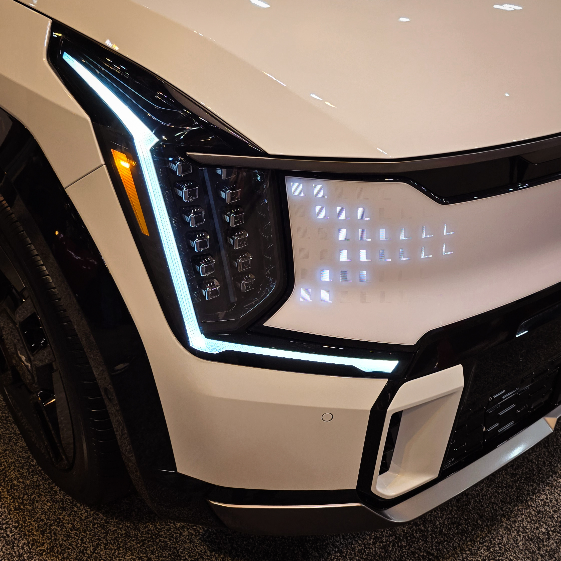 America's Center: A Hyundai EV9 headlight at the 2025 St. Louis Auto Show; January 11, 2025