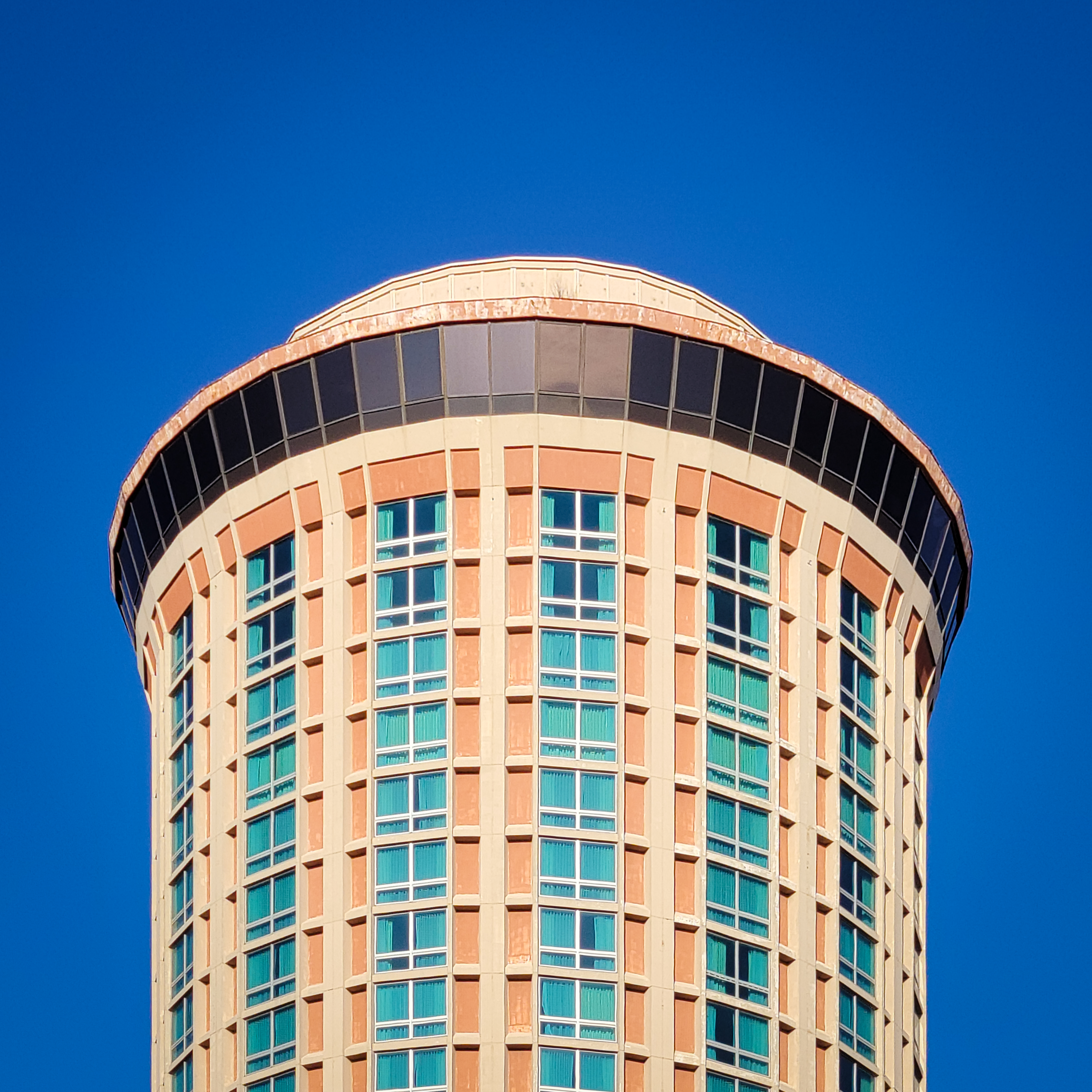 Millennium Hotel Saint Louis Tower I: Upper floors from the west; February 26, 2022