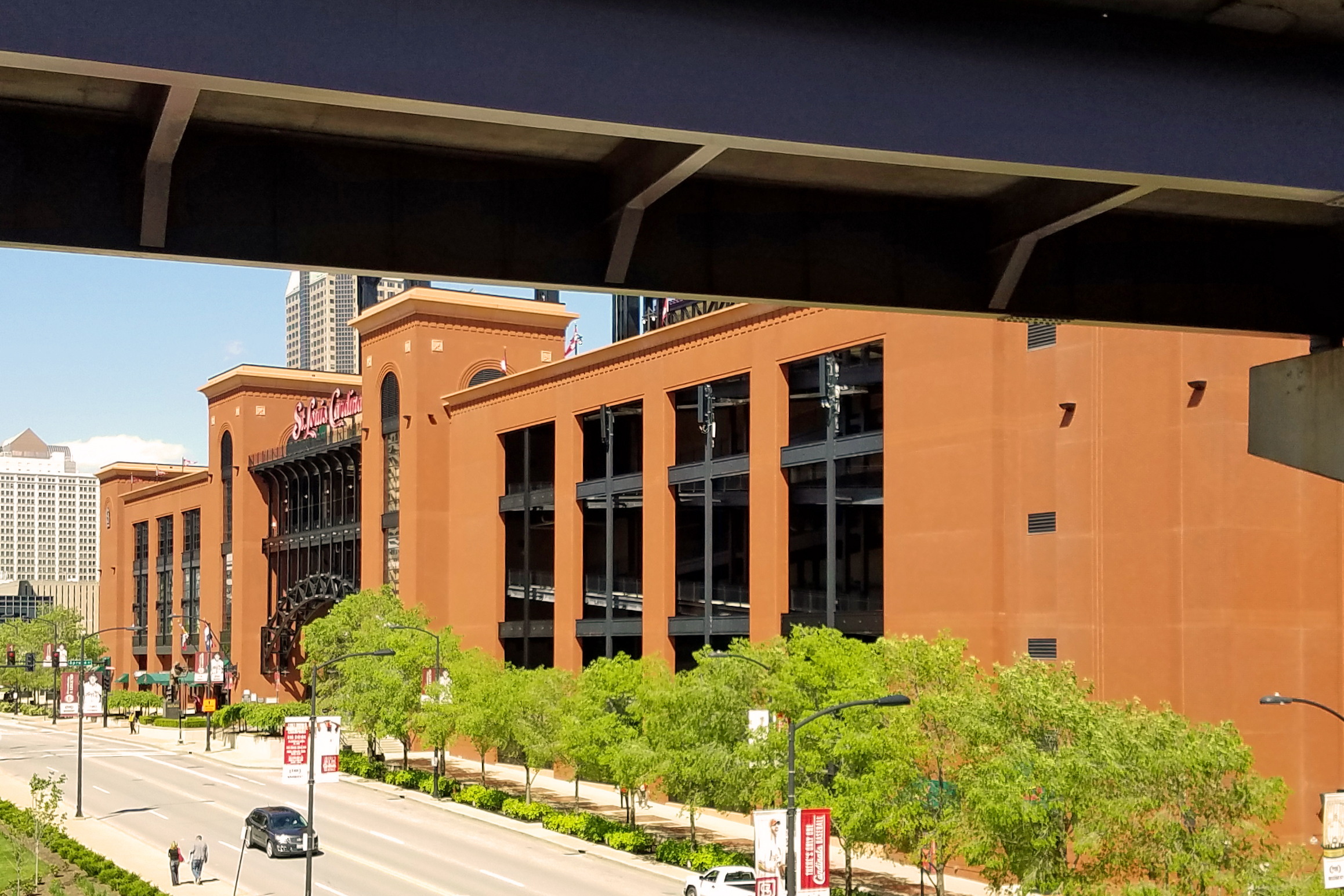 Busch Stadium: View from the Poplar Street Bridge to the southwest; May 2, 2017