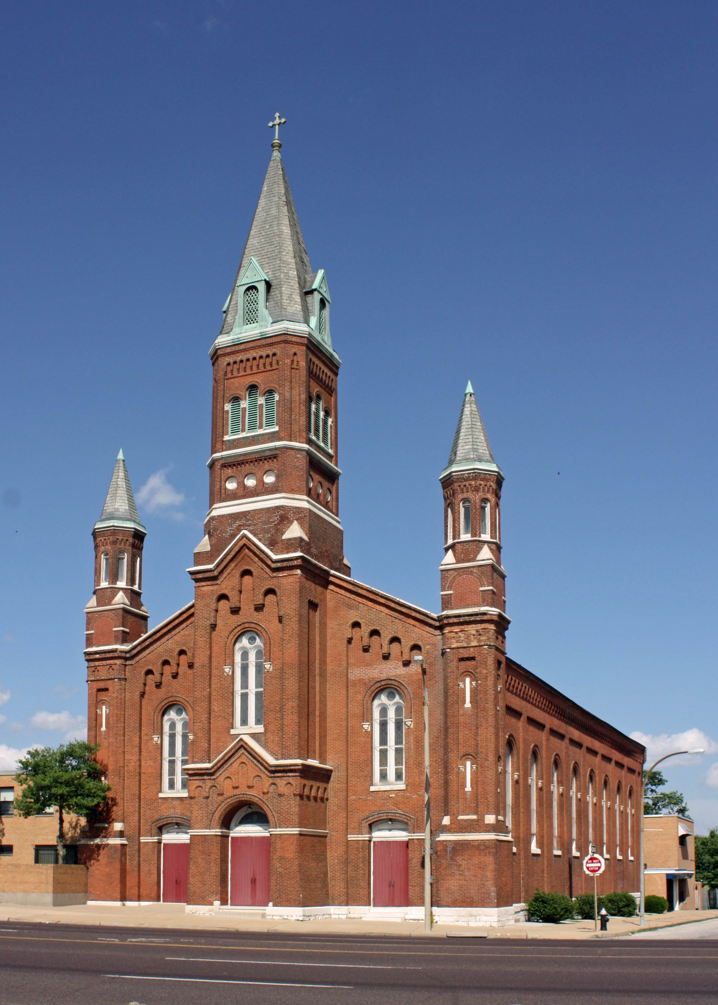 Saint Bridget's Catholic Church: View from the west across Jefferson Avenue