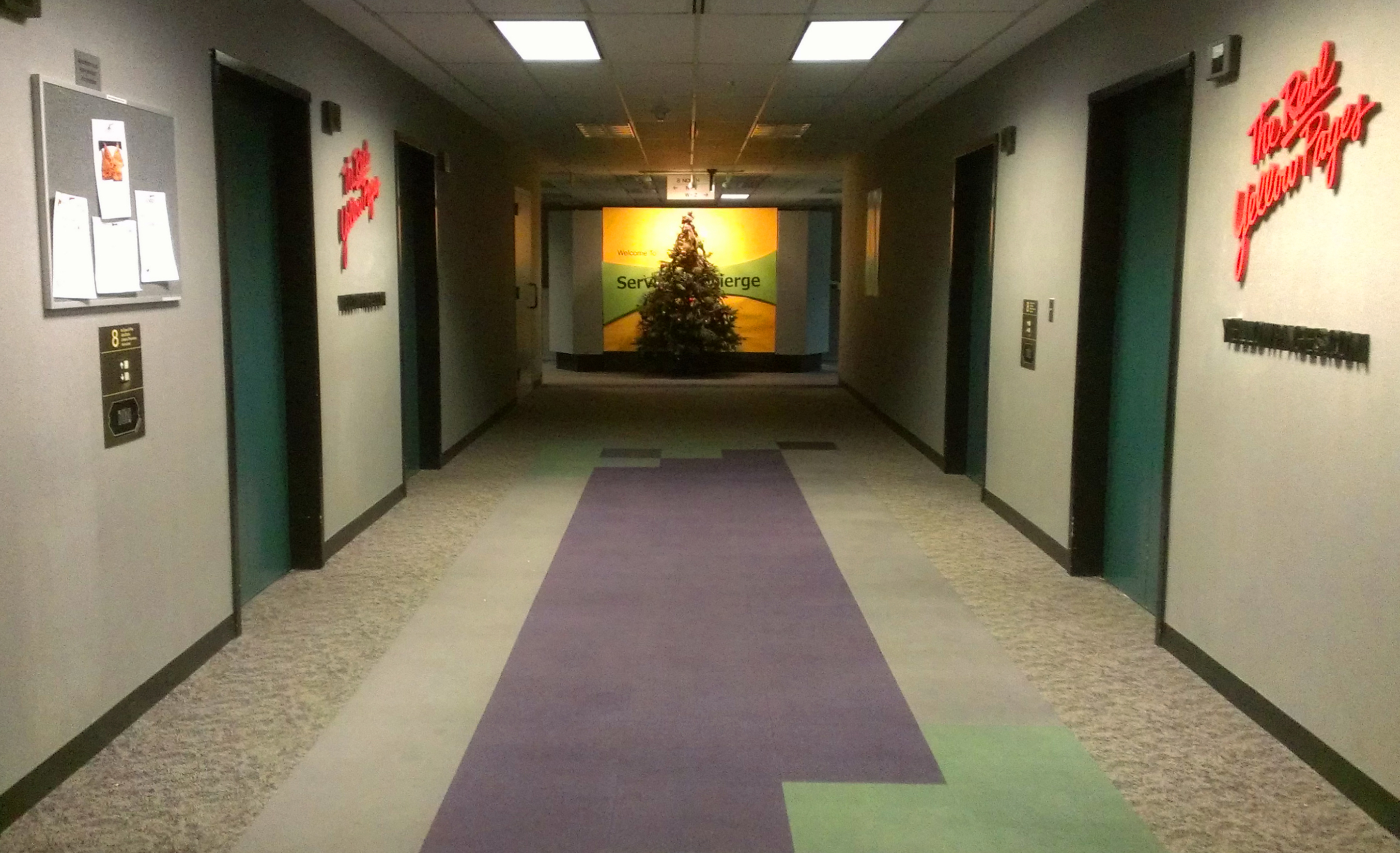 909 Chestnut: View of the 8th floor elevators; December 8, 2012