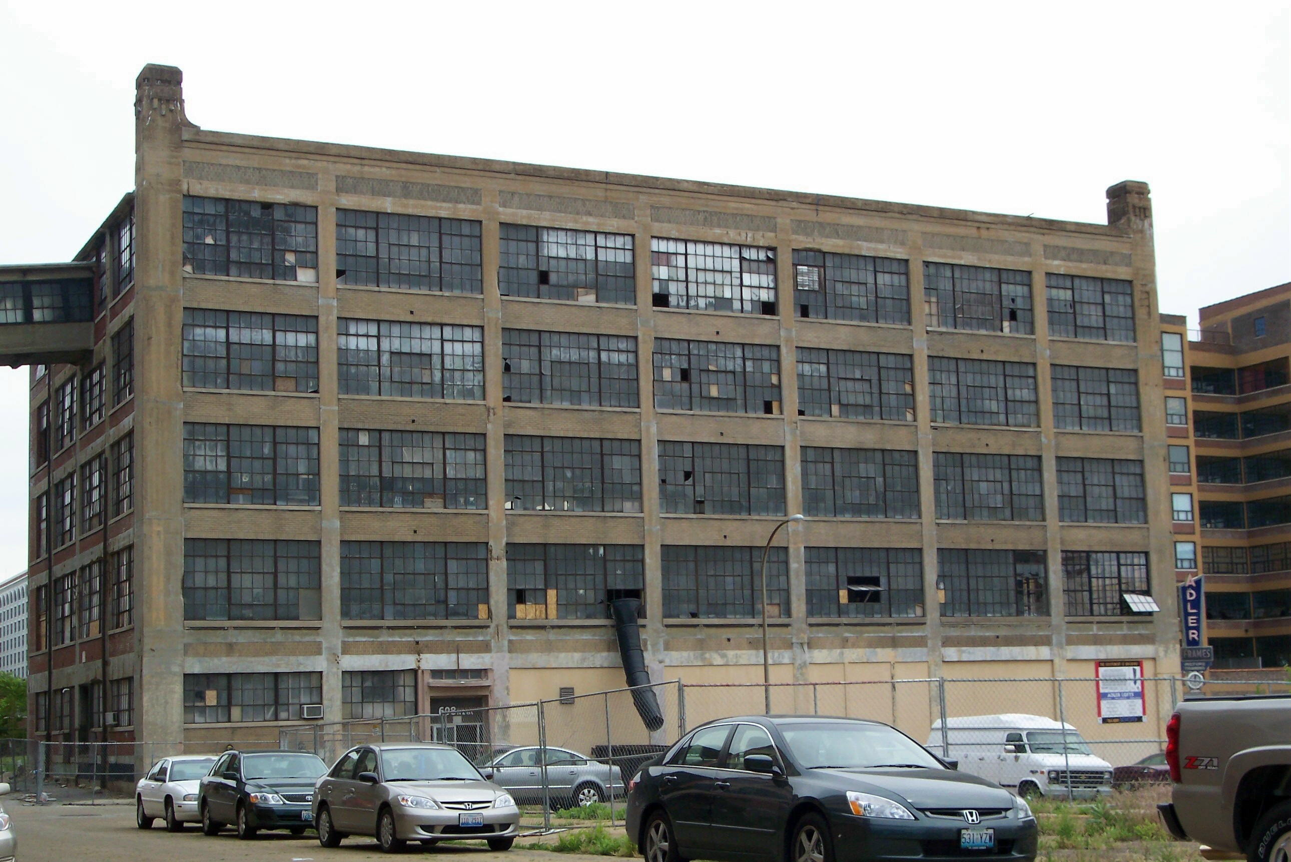 Adler Frame Lofts: View from the northwest during renovation; May 26, 2005