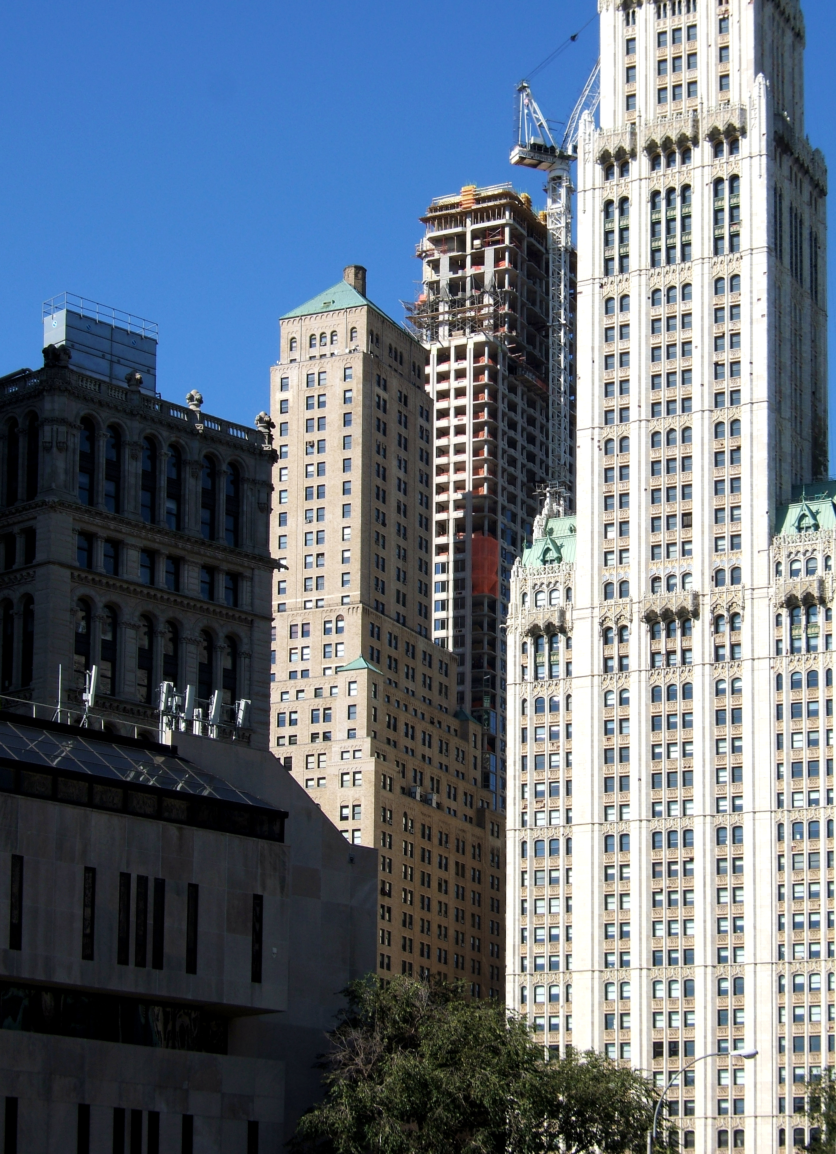 Barclay Tower: View from the east between the Transportation and Woolworth Buildings